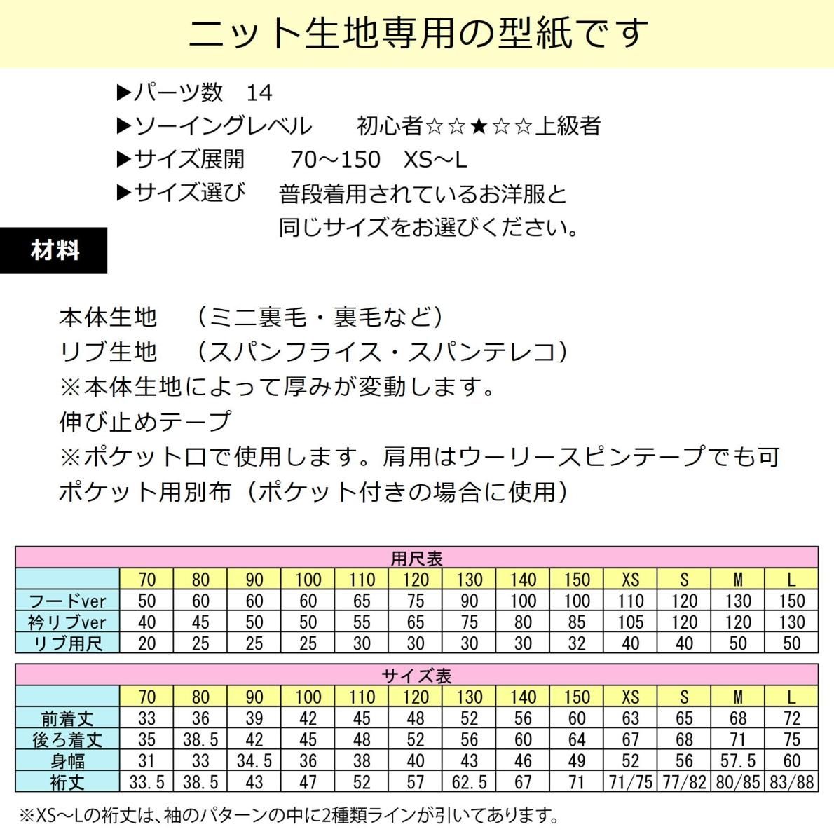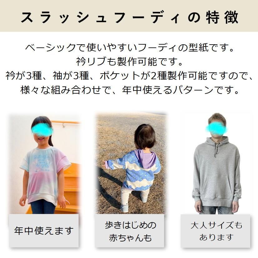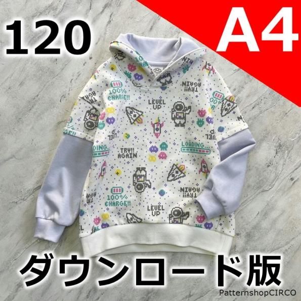 ---【A4サイズ】---◆ダウンロード版◆スラッシュフーディ・120サイズ・子供服・型紙